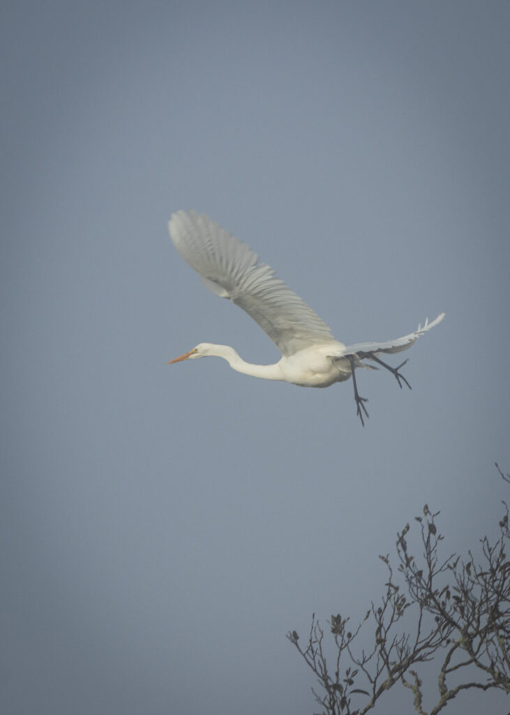 飛翔時には首を「S字」に曲げて飛ぶため、同じ白い鳥の白鳥とは姿勢で簡単に区別できます。