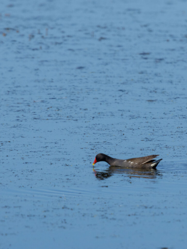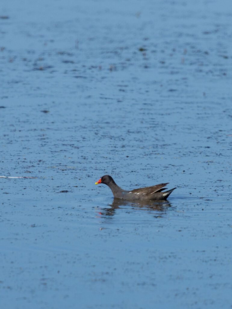 比較的警戒心が強いですが、湿地に隠れながら泳ぐ姿を観察することができます。