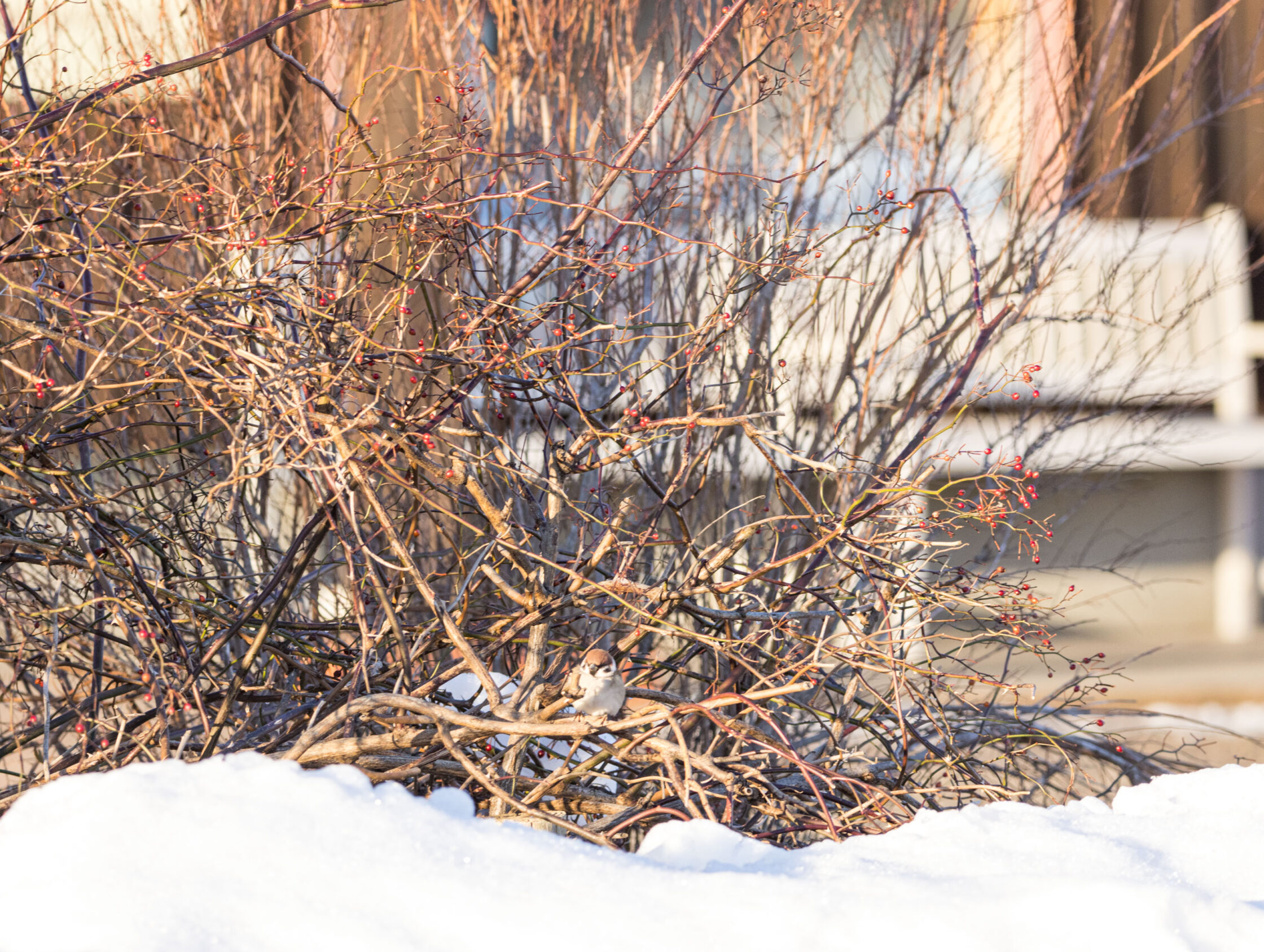 🔵 **冬(越冬期):**羽の間に空気を取り込んで丸くなる「ふくらスズメ」が見られます。雪の上で餌を探す姿が印象的です。